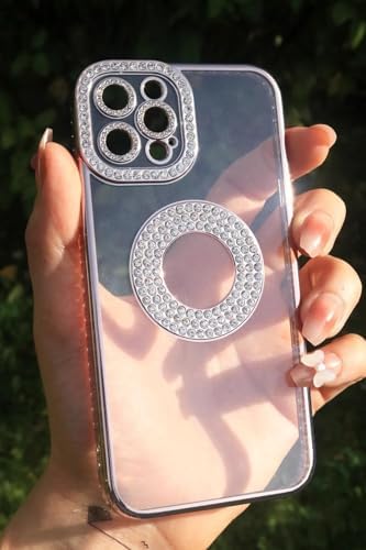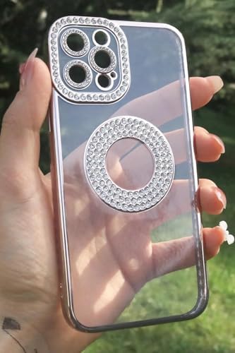 taşlı tasarım 13 Pro İle Uyumlu Taşlı Parlak Logo Açık Kadın Kılıf Kapak (rosegold)