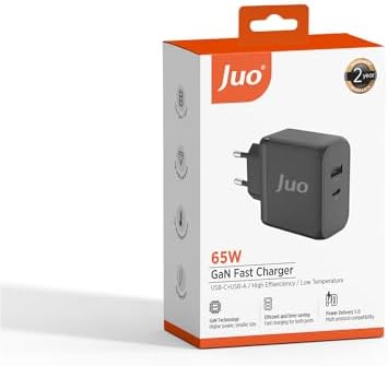Juo G651C1A65W GaN USB-C + USB-A çıkışları sayesinde aynı anda birden fazla cihazı hızlı ve güvenli bir şekilde şarj edebilirsiniz. Gelişmiş şarj protokolleri (PPS, PD3.0, QC4.0, AFC, vb.) ile uyumludur ve aşırı akım, aşırı sıcaklık, kısa devre gibi koruma protokolleri ile cihazlarınızı güvence altına alır. Juo G651C1A 65W şarj cihazında Type-C portu tek başına kullanıldığında 65W, USB-A portu tek başına kullanıldığında 18W ve her iki portta aktif kullanıldığında toplam 45W+12W güç çıkışı sağlayacaktır. GaN teknolojisi ile şarja taktığınız cihazlar yüksek hızlarda şarj olurken ısınma probleminin de önüne geçilmektedir. Juo G651C1A 65W GaN PD şarj cihazını iPhone, iPad, , , gibi ürünlerin yanında PPS destekli cihazlarla da güvenli bir şekilde kullanabilirsiniz. Kompakt boyutu, 120 gramağırlığı ile her zaman yanınızda taşıyabilirsiniz. Dayanıklı ve alev almaz plastik kasası düşmelere, darbelere daha dirençli hale getirerek cihazınızı uzun süreler kullanmanızı sağlamaktadır. PPS Nedir ? Programmable Power Supply (PPS) Programlanabilir Güç Kaynağı USB Type-C üzerinden hızlı şarj imkanı sunmaktadır. Dinamik olarak voltajı ve akımı ayarlayan teknoloji cihazın durumuna bağlı olarak maksimum gücü vermeye çalışıyor. Ayrıca şarj esnasında kayıpları da en aza indiriyor ve ısınmayı engelliyor. 10 saniyede bir akım üzerinde dinamik optimizasyon yapabiliyor. Bu sayede daha verimli ve daha hızlı şarj etmesi hedeflenmektedir. Gelişmiş GaN Teknolojisi Nedir ? GaN (Galyum nitrid), şarj aletleri ve güç adaptörlerinde giderek daha fazla kullanılan yenilikçi bir yarı iletken kristal malzemedir. Geleneksel silikon bazlı şarj cihazlarına göre yüksek performans sergilemektedir. Mükemmel iletkenliğinin yanında yüksek sıcaklıklara karşı dirençlidir. GaN teknolojisine sahip şarj cihazlarının yüksek frekansları nedeniyle, daha az alan gerektirir. GaN teknolojisinden güç alan Juo 65W G651C1A şarj adaptörü silikon bazlı şarj cihazlarına kıyasla minimal yapıda daha yüksek Watt değerlerine sahiptir. Evrensel Uyumluluk Juo G651C1A 65W GaN USB-C Şarj Aleti iPhone & iPad & Android & Notebook & Macbook & PPS Uyumlu PD QC4.0 Type-C Hızlı Şarj Cihazı desteklediği protokoller sayesinde bir çok cihaz ile uyumluluk sağlamaktadır. 65W çıkış gücü ile uyumlu tüm telefon, tablet, notebook, macbook gibi cihazlarınızda güvenle kullanabilirsiniz. Ultra Kompakt Tasarım Juo 65W USB-C Güç Adaptörü küçük boyutu ve sadece 120 gram ağırlığı ile çantanızda rahatlıkla taşıyabilirsiniz. Küçük boyutları dar alanlarda bile rahatlıkla kullanmanıza kolaylık sağlamaktadır. Günlük yaşamınızda, işte, seyahatte veya spor aktivitelerinde rahatlıkla yanınızda taşıyabilir, kullanım kolaylığının keyfini sürebilirsiniz. Multi Güvenlik Teknolojisi Juo G651C1A 65W USB-C + USB-A şarj aleti entegre akıllı devre tasarımı ile aşırı akım, sıcaklık, kısa devre, düşük –yüksek voltajlara karşı koruma sağlamaktadır. Cihazlarınızı şarj esnasında kapsamlı koruma sağlayarak güven altında tutar. Alev geciktirici plastik kasası düşmelere, darbelere karşı dayanıklıdır. Multi Protokol Juo 65W USB-C + USB-A şarj cihazı gücünü GaN teknolojisinden almaktadır. GaN teknolojisi sayesinde PD3.0, 5V2.4A, QC4.0, QC3.0, AFC, FCP, SCP, DCP, PPS dahil olmak üzere tam hızlı şarj protokollerine sahiptir. 65W GaN USB-C + USB-A Şarj Aleti iPhone & iPad & Macbook & Notebook Uyumlu PD Hızlı Şarj Cihazı