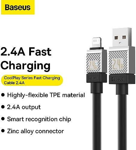 cable: USB CoolPlay Serisi Hızlı Şarj Kablosu USB to iP 2.4A, 2m, Siyah