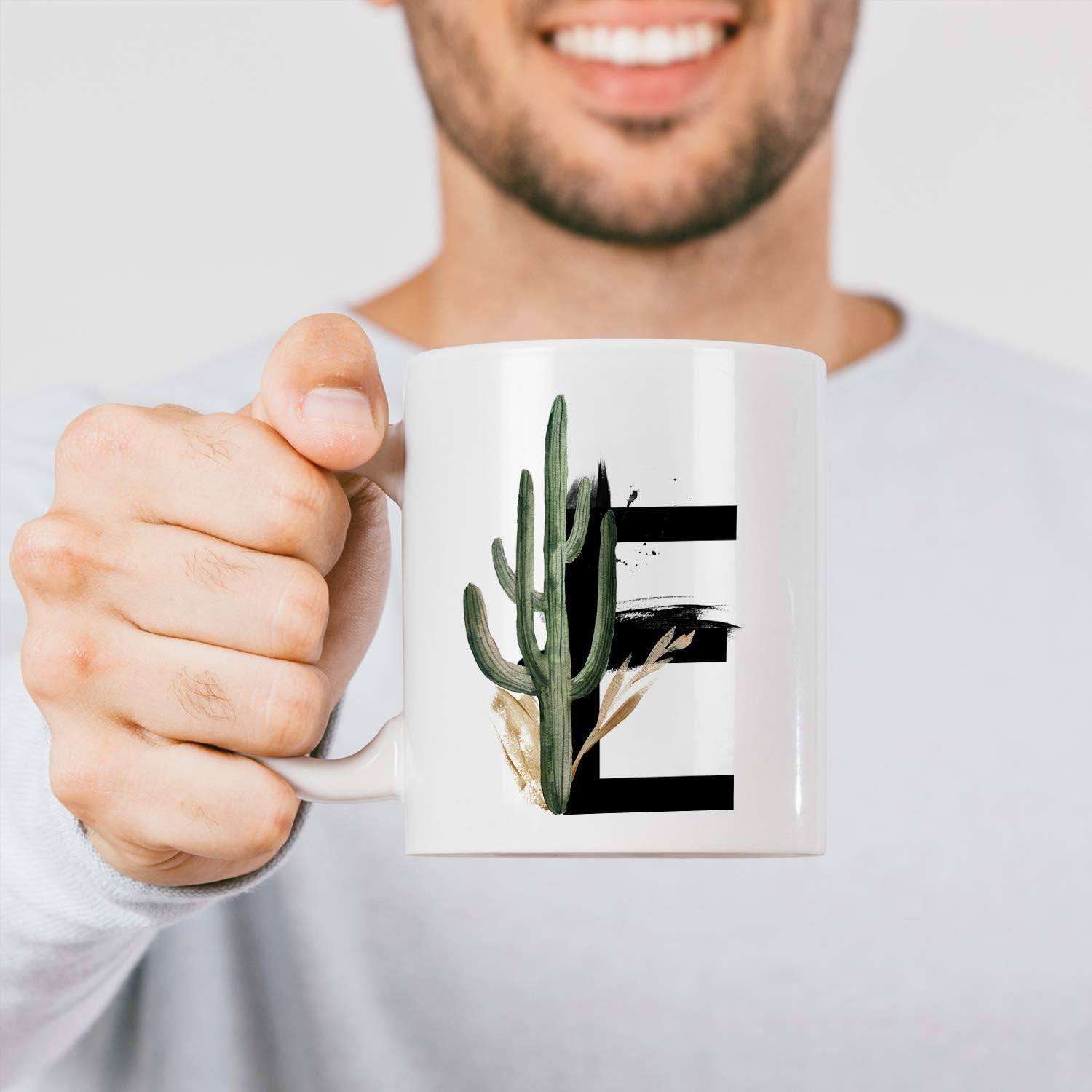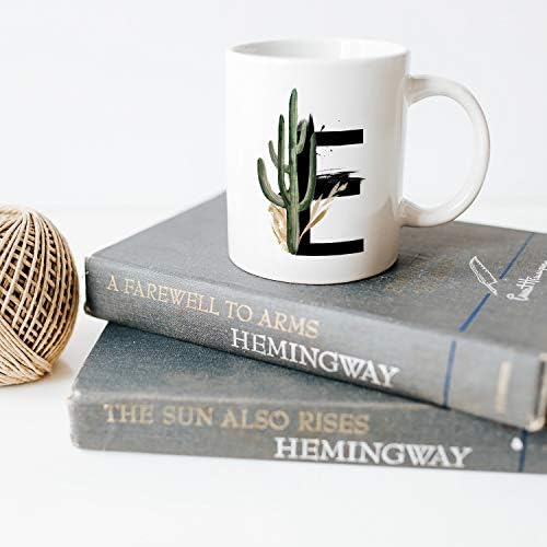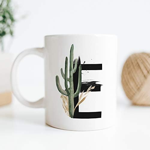 E Harfi Baskılı Çiçek Desenli Dekoratif Baş Harf Baskılı Kupa Bardak E Harfli Kahve Bardağı