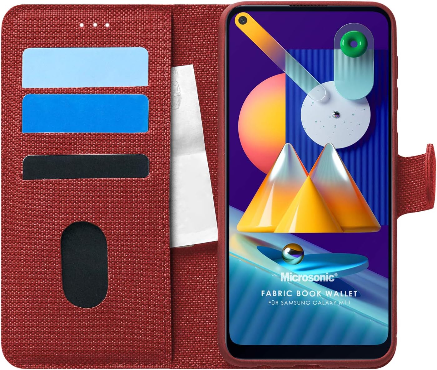 Galaxy M11 için Kılıf Fabric Book Wallet Kırmızı [Galaxy M11 ile Uyumlu Kılıf – Kırmızı]