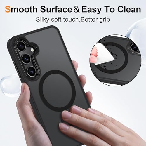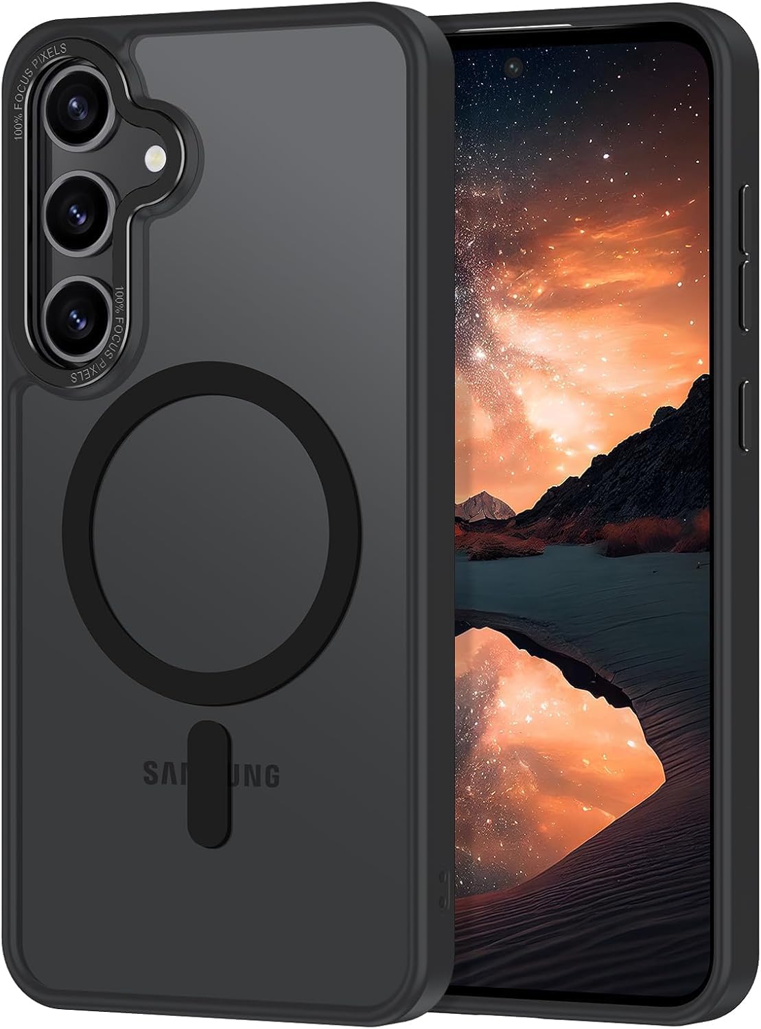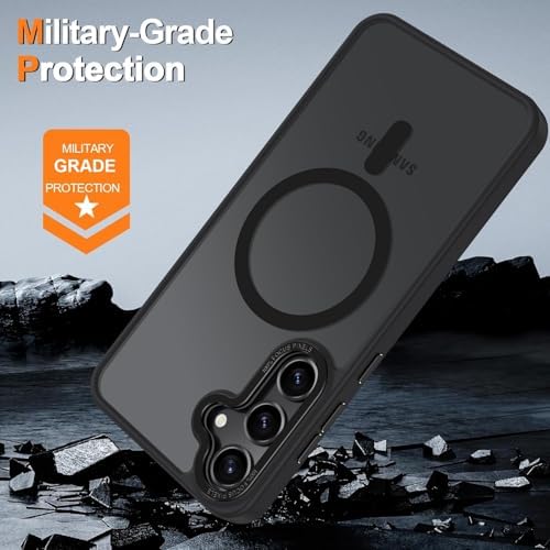 Galaxy S24 FE Uyumlu Kamera Korumalı Magsafe Wireless Şarj Özellikli Arkası Mat Metal Tuş Takımlı Ultra Güçlü Korumalı Silikon Kılıf (Siyah, Galaxy S24 FE)