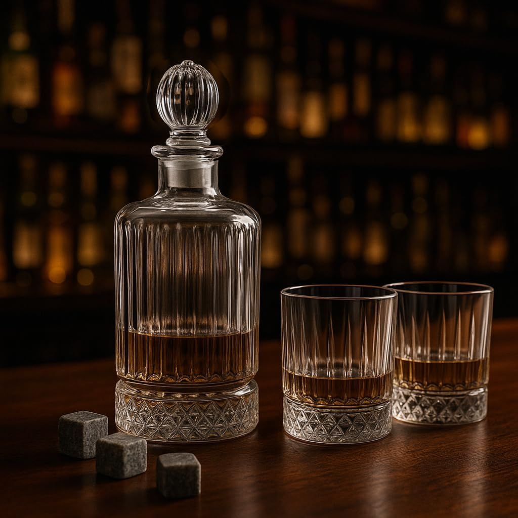 Home Cam Karaf Sürahi ve 2 Adet 265 ml Bardak – Viski Seti – Su Meşrubat Viski Şişesi 1100 ml