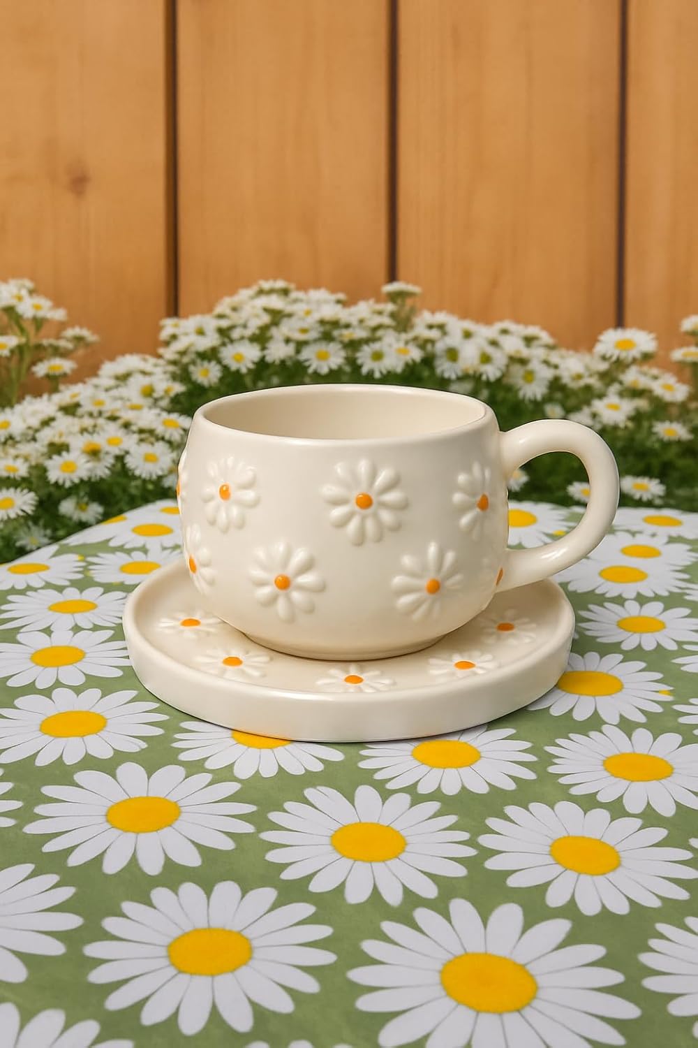 Home Life Seramik El Yapımı Dekoratif Papatya Kupa Fincan Takımı
