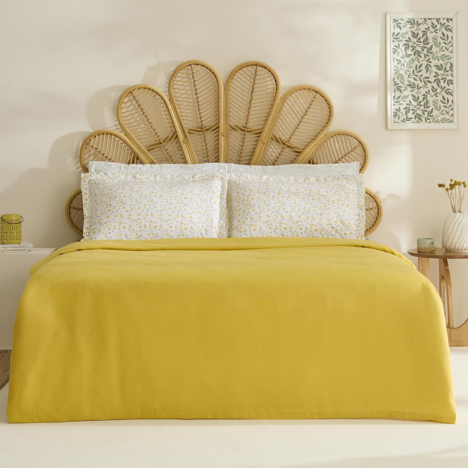Desenli Home Lina Bambu Tek Kişilik Pike Takımı Sarı
