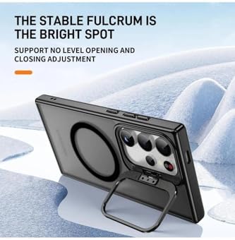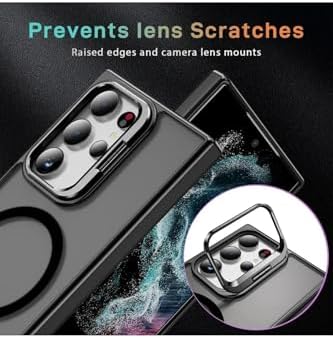 için Kılıf Kamera Korumalı Magsafe Wireless Şarj Özellikli Mat Şeffaf Renkli Standlı Kılıf (Lens Hediyeli) (Siyah, S23 Ultra)