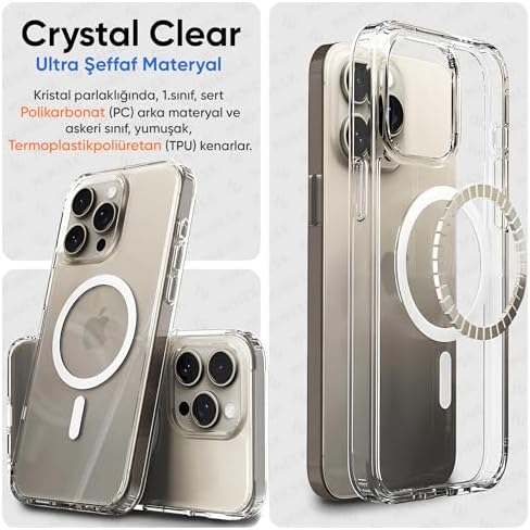 【1. Sınıf Premium Materyal】: Kristal Şeffaflığında Görünüm Sağlayan Polikarbonat Arka Yüzey ve Yumuşak Silikon Kenarlar, Şeffaf Polikarbonat Tuş Takımı ve Polikarbonat Manyetik Çember. 【Şık Görünüm】: Kristal Berraklığındaki Materyaller Cihazı Olduğundan Daha Şık Ve Parlak Gösterir. Kusursuz Kalıbı Sayesinde Cihazla Bütünleşerek Zarif ve Minimalist Bir Görünüm Sağlar. 【Güçlendirlmiş Mıknatıslar】: Kılıfın Arkası Çember Şeklinde Boyanarak Yapılmış Ucuz Kılıfların Aksine, Manyetik Çember; İnce ve zarif , 3D Görünüme Sahiptir ve Kılıfın İç Kısmına Bir Bütün Olarak Yerleştirilmiştir. Ayrıca Güçlü Bir Mıknatıs Deneyimi İçin Neodium N52 Mıktanıslar Kullanılmıştır. Bu Sayede Tüm Manyetik Aksesuarlar İle Güçlü ve Güvenli Bir Tutunma Sağlar 【Ultra Hassas Butonlar】: Kılıfla Beraber Aynı Kalıpta Basılmak Yerine, Kılıfa Sonrada Eklenen Polikarbonat Mataryal Tuş Takımı, Oldukça Hassas Çalışarak, Rahat ve Konforlu Bir Kullanım Deneyimi Yaşatır. 【İnce Ve Güçlü】: 2.0 mm Kalınlığa Sahip Bu Kılıf, Cihaza Hatasız ve Boşluksuz Bir Şekilde Oturduğu İçin İnce Bir Görünüm ve Tutuş Hissiyatına Sahiptir. Ayrıca Kılıfın Kalınlığına Etki Etmeden Köşeleri Koruyan Güçlü Hava Yastıklarına Sahiptir. iPhone 14 Pro Max için Origin Serisi Premium Kalite Magsafe ile Uyumlu Kılıf Crystal Clear Super Şeffaf Materyal ve İnceltilmiş 3D Gerçek Manyetik Çember (14 Pro Max)
