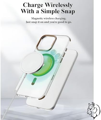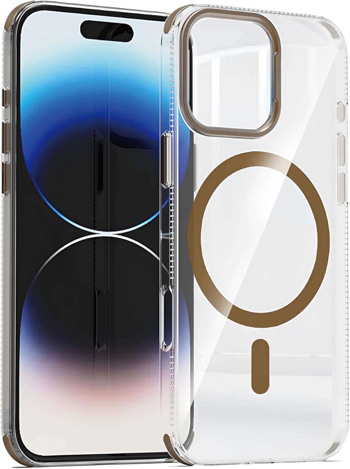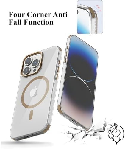 iPhone 14 Pro Max MagSafe Uyumlu Şeffaf Kılıf – Dört Köşe Darbe Koruması, Metal Kamera Çerçevesi ve Tuşlar, Sararmaya Dayanıklı Şeffaf Arka Yüzey, Platinum Serisi (Çöl Titanium)