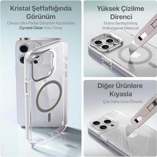 iPhone 16 Pro için Magsafe ile Uyumlu Luxo Serisi Yüksek Kalite Kılıf Ultra Şeffaf Görünüm Ve Standlı Ergonomik Tasarım (Natural Titanyum, 16 Pro)