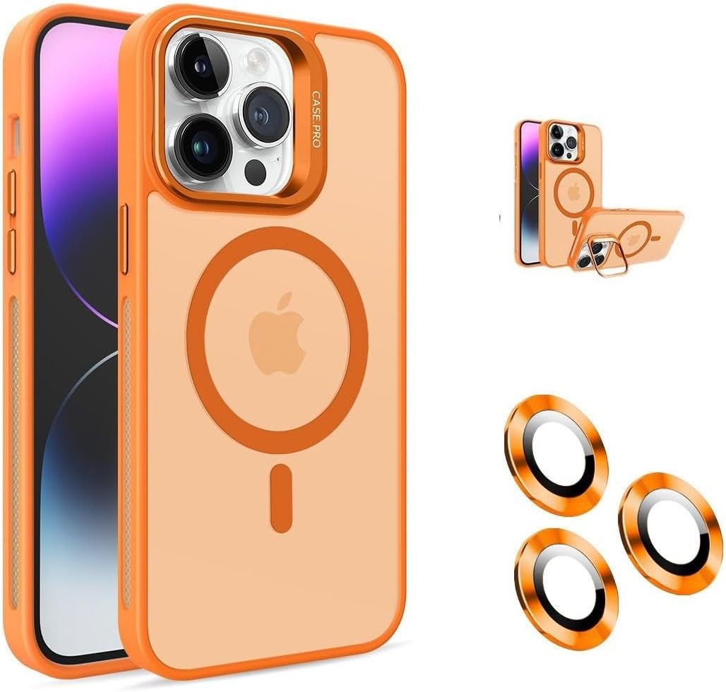 iPhone 16 Pro Kamera Korumalı Standlı Kılıf Magsafe ile Uyumlu Açılır Kamera Standlı Manyetik 16 Pro Kılıf Lens Korumalı Set Darbeye Karşı Korur 16 PRO Kapak (Turuncu)