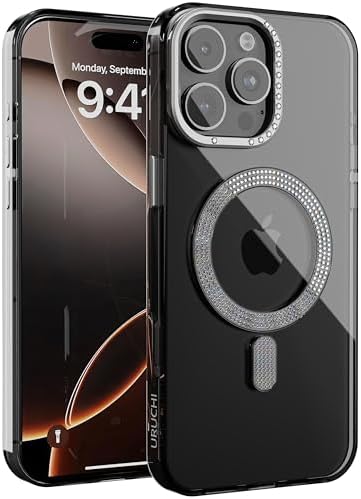 iPhone 16 Pro Max ile Uyumlu Şeffaf Taşlı Mag-Safe Kılıf – Sert Mika Sararmaz Kılıf, N52 Güçlü Mıknatıs, Bağımsız Tuşlar, Lüks Kristal Tasarım (Şeffaf Siyah, iPhone 16 Pro Max)