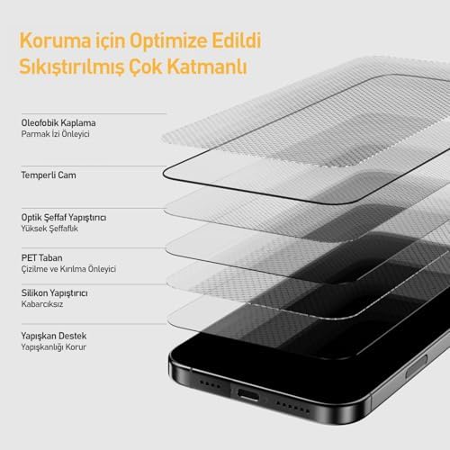 Otomatik Hizalama : Buff EasyFit ekran koruyucu takarken harcanan zamanı en aza indirecek şekilde tasarlanmıştır. Paket içeriğinde bulunan uygulama aparatı sayesinde oldukça kolay bir şekilde kurulumu tamamlayabilirsiniz. Toz Geçirmez Kolay Kurulum : Hızlı kurulum aparatına entegre toz alma etiketi ile birkaç saniyede kusursuz bir şekilde uygulama yapabilirsiniz. Dayanıklı Kaplama : Oleofobik kaplama ile parmak ve yüzünüzdeki yağın telefonla konuşurken ekran koruyucu üzerine bulaşmasını önlemeye yardımcı olur, böylece cihazınız harika görünür ve kolayca temizlenir. Pürüzsüz Dokunuş : Maksimum şeffaflık için tasarlanmış 5D PRIVACY CAM, ekranı görüntü kaybı olmadan en net şekilde görebilmeniz için tasarlanmıştır. Üstün Koruma : Ekran kırılmasına, düşmelere, çizilmelere veya darbelere karşı yardımcı koruma iPhone 16 Serisi ile Uyumlu 5D Privacy EasyFit 2 Adet Kolay Uygulama Aparatlı Ekran Koruyucu Temperli Cam Hayalet Ekran (iPhone 16e)