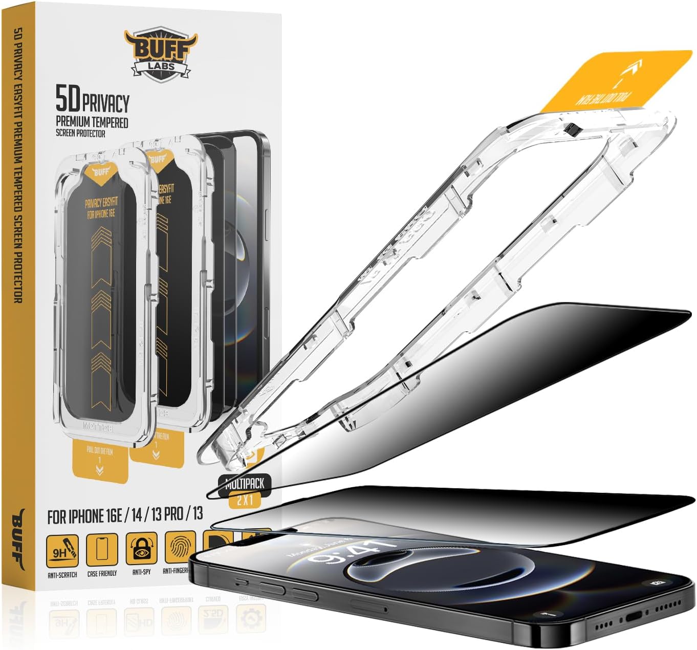 iPhone 16 Serisi ile Uyumlu 5D Privacy EasyFit 2 Adet Kolay Uygulama Aparatlı Ekran Koruyucu Temperli Cam Hayalet Ekran (iPhone 16e)