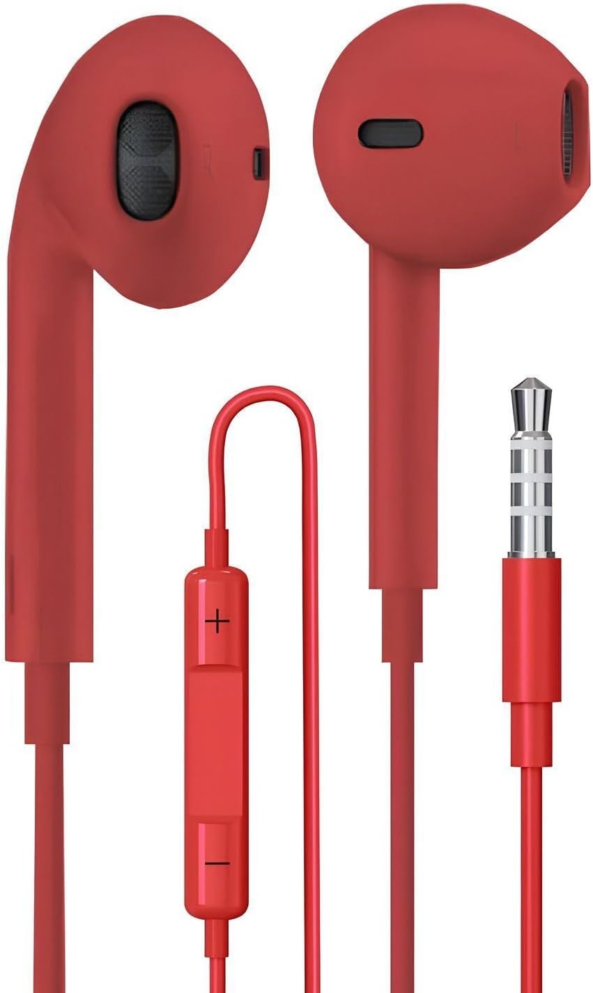 Jack Girişli Kırmızı Kablolu Kulaklık Ios Android İle Uyumlu 3.5 Mm Kulaklık Renkli