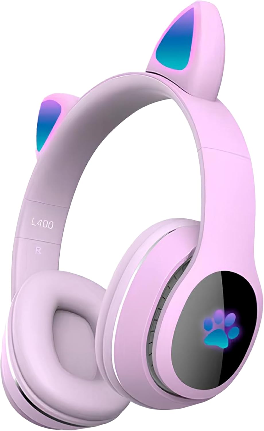 Kedi Kulak Rgb Led Işıklı Kablosuz Bluetooth Kulaklık Mikronlu Hafıza Kartı Girişli Kedi Kulaklık (Lila)