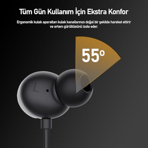 Akıllı kumanda ve mikrofon Ortam sesini azaltan ergonomik tasarım Çağrı cevaplama ve sonlandırma Type-C ve Lightning Bağlatı LABS Blogy BR05 Kulakiçi Kulaklık, Kablolu, Dahili Mikrafon, (Siyah)