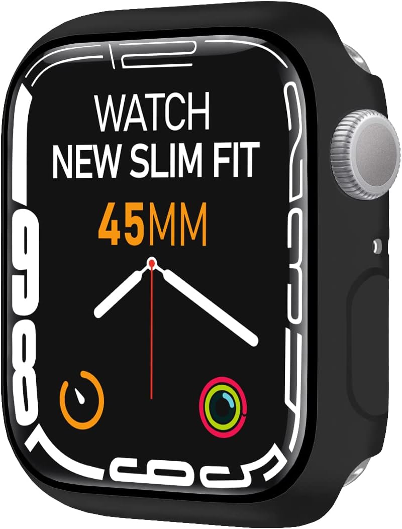 LABS Watch 8/7 Uyumlu New Slim Fit Kılıf 45mm, Ekran Koruyuculu Akıllı Saat Kılıfı (Siyah)