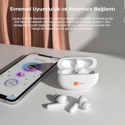 【Üstün Ses Kalitesi ve Hi-Fi Performansı】Lecoo EW306, Bluetooth 5.1 teknolojisi ile düşük güç tüketimi ve Hi-Fi desteği sayesinde yüksek kaliteli performans sunar. Stabil ve net seslerle müziğin keyfini çıkarın! 【Dokunmatik Kontroller】Kulaklık üzerindeki dokunmatik tuşlarla kolayca çağrıları cevaplayabilir, müziği çalabilir veya durdurabilirsiniz. Telefonunuza dokunmadan kontrol sizde. 【Uzun Pil Ömrü】Yüksek kaliteli bataryası ile 5 saate kadar konuşma ve 3 saate kadar müzik dinleme süresi sunar. Kulaklıklar kutu içerisinde 1 saatte şarj olurken kutusu da 60 dakikada şarj olur. Toplamda 80 saate kadar bekleme süresi ile kesintisiz müzik ve konuşma deneyimi yaşayın. 【Pasif Gürültü Engelleyici】Pasif gürültü engelleyici teknolojisi ile dış ortam seslerini minimuma indirir ve sizi müziğinizin kollarına bırakır. Eşsiz bir dinleme deneyimi. 【Evrensel Uyumluluk ve Kesintisiz Bağlantı】Lecoo EW306 Bluetooth 5.1 Kablosuz Kulak İçi Kulaklık, Android ya da iOS fark etmeksizin her tip cihazda stabil performans gösterir. İleri düzey Bluetooth bağlantı teknolojisi ile ses aktarımı esnasında herhangi bir kopma ya da gecikme yaşanmaz. Lecoo TÜRKİYE GARANTİLİ Lecoo EW306 TWS Kulak İçi Bluetooth Kulaklık Beyaz