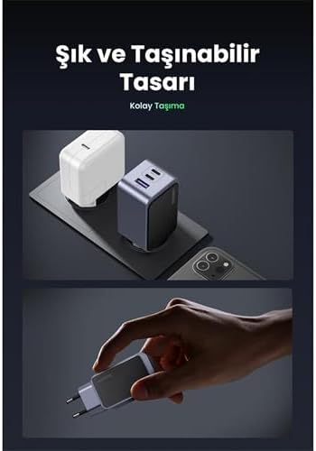 UGREEN 65W 3 Portlu Hızlı Şarj Adaptörü Nexode Air 65W 3-Port GaN Fast Charger EU Hızlı Şarj Adaptörü