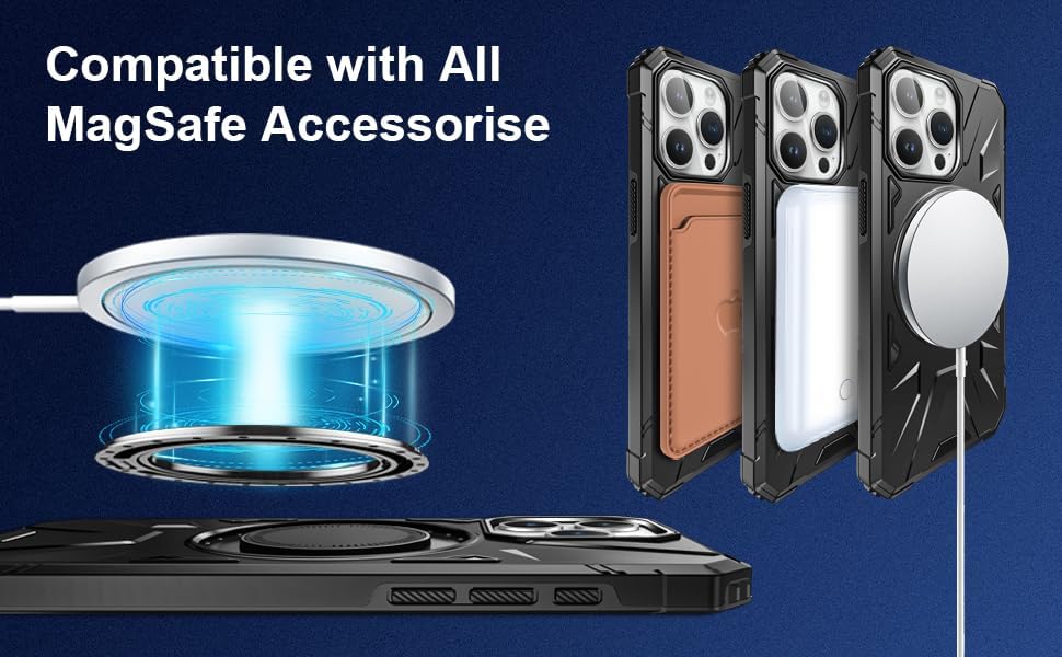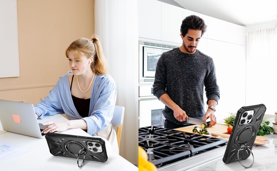 Rugged Kapak Döner Stand ve MagSafe Uyumlu Tam Korumalı Kaliteli Telefon Kılıfı, Çok Renkli (İPHONE 16 PROMAX SİYAH)
